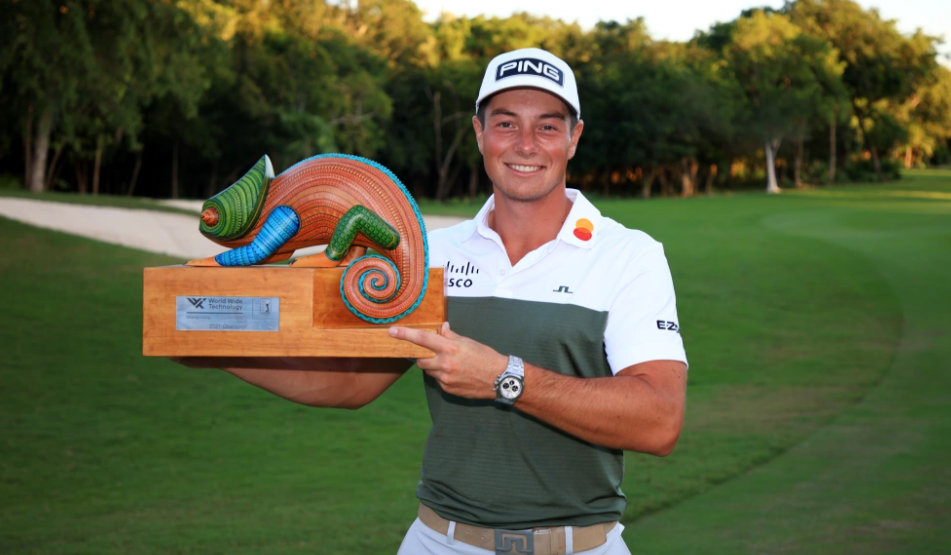 Superstar Norwegian Viktor Hovland is chasing a rare PGA Tour feat and that is to win the same event – the World Wide Technology Championship at Mayakoba – for three years running.