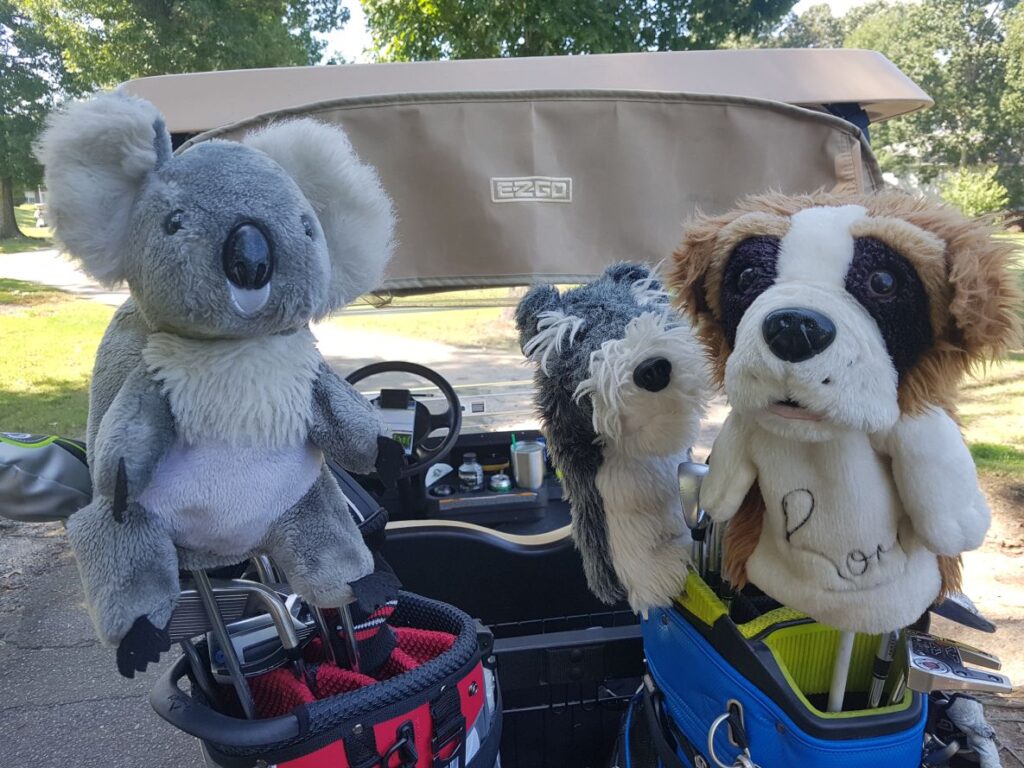 The leading headcovers in golf – Ted Koala and Rory’s St. Bernard. Image @TourMiss (Not too sure who the guy in the middle is)