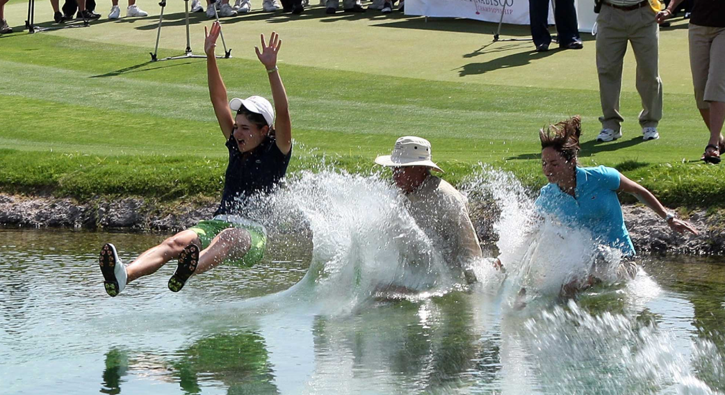 From 1988 to 2022, the winner traditionally celebrated her victory by jumping or leaping into pond that surrounded the 18th green.