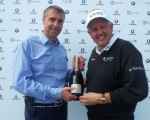 Monty was met by BMW’s Marco Kaussler after his round of a level par 72 and presented with a bottle of champagne.