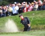 Rory McIlroy splashes out of a bunker at the 7th hole on route to a shock 77. (Photo – Eoin Clarke/www.golffile.ie)
