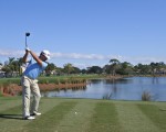 Scott was in cruise control coming to the par three 15th hole but first put he tee shot into water way right of the green and then in playing a third, the Aussie’s ball rolled off the bank back right behind the green and also into alligator-infested hazard.