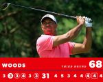 Woods was tied for the then lead at 11-under par with a birdie at the par-5 15th only to spoil his continued drive to the front with bogeys at the 16th and final holes in a round of 68 for a nine-under par tally on the Muirfield Village course.