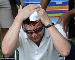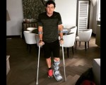 McIlroy looks a sorry sight standing with the aid of crutches after rupturing ankle ligaments while playing a friendly game of soccer.