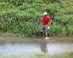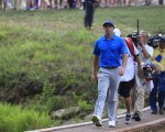 Day’s caddy, Col Swanton, shed he shoes and socks and waded into the stream and them up the opposite slope to being looking for the TaylorMade ball and really it was not till after slow-motion replay footage that Day’s ball was found.