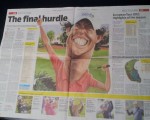 The superb caricature by Nino Jose Heredia appeared in the Sports section of Gulf News under the headline – ‘The final hurdle’.