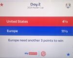 Not even the appearance of USA President Donald Trump could help lift Keegan Bradley’s men and with Europe taking an emphantic and all important three point lead of 5/2 to 2 1/2 from the opening day proceedings.