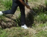 Fleetwood’s caddy Ian Finnis had earlier broken a wooden crosswalk sign in half in trying to remove it so Fleetwood wouldn’t hit it while playing his shot.